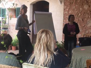 Es casi imposible recopilar todo lo ocurrido en este último curso, sí puedo resumir que tuvimos clases los martes de 19:00 a 21:30 horas en Verdeteja, Alcúdia. Que recibimos facilitadores invitados estupendos (Caterina Amengual tema Agua y Luis Llabrés tema Pensamiento Sistémico). Que al final no pude haberlo hecho sin mis compañeras Mandy y Meiling, que me rescataron hacía el final del curso haciendo un par de sesiones ellas en la Escola Kumar, que por cambios en mi situación personal (¡la Vida!) no pude hacer todas las clases sola. Que los participantes estaban super involucrados y que venían de cerca tanto como de lejos (Felanitx, Manacor, Palma/Llucmajor, Sencelles, Llubí, Can Picafort, Alcúdia…). Que sus diseños personales tanto como finales en grupo son super inspiradores. ¡Que los diseños finales son proyectos reales y que agradecemos mucho su colaboración! Que he aprendido muchísimo yo misma… ¡y tanto! Por ser un espacio diferente, un formato diferente, un grupo más reducido, estar yo sola la mayoría de veces (por eso tampoco tengo muchas fotos, como en otros talleres PermaMed), por sentirme insegura y quererme preparar lo mejor posible he estudiado de nuevo en detalle los contenidos de un CDP (!!)…