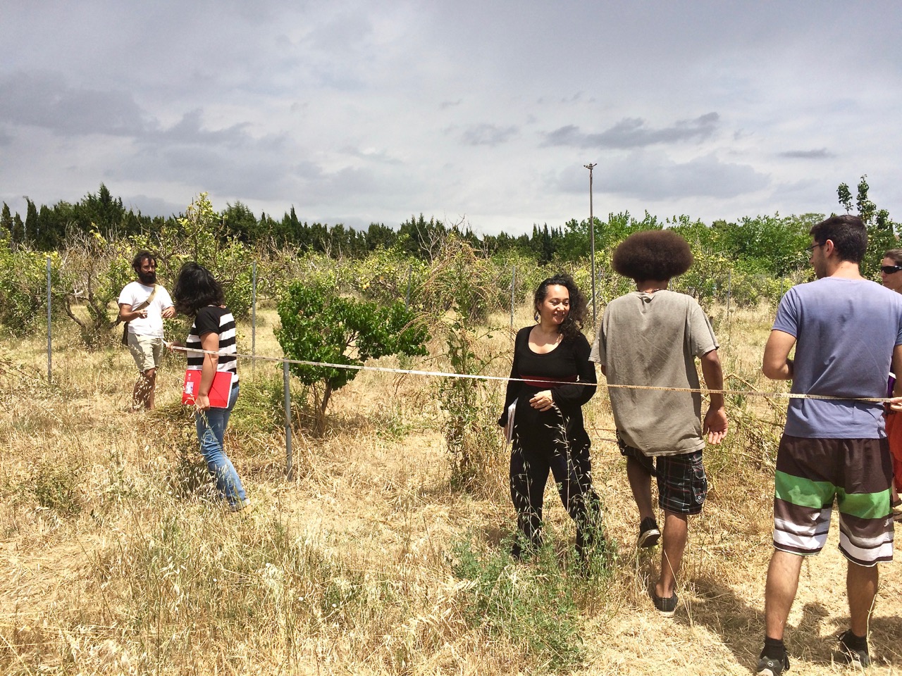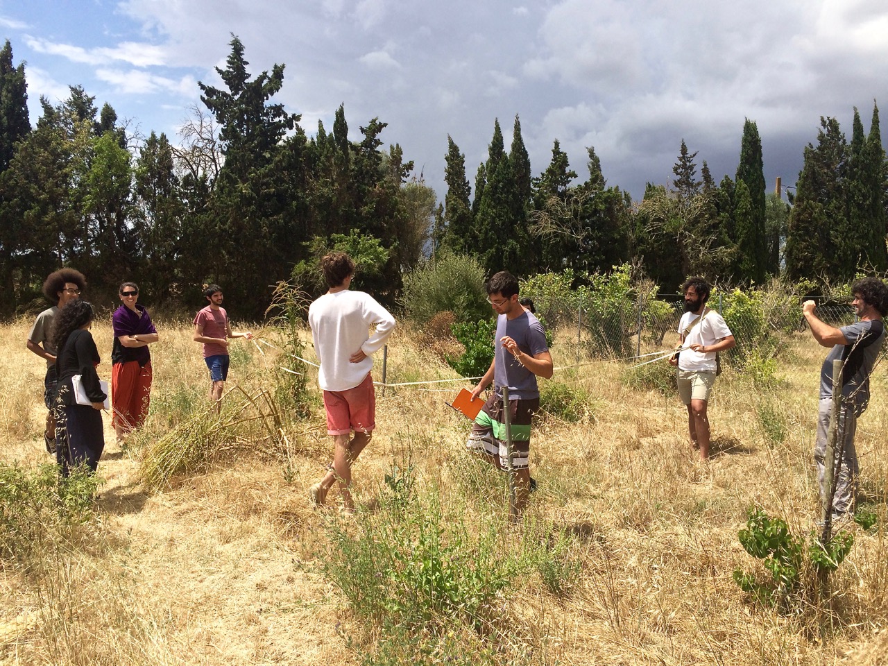 Lo cual nos lleva a otra interesante reflexión. Julio Cantos nos explica que los antiguos agrónomos usaban cuerdas de doce nudos para medir fincas con precisa exactitud…luego llegó Pitágoras, estudió lo que hacían, y descubrió la formula detrás de la técnica. Supuestamente esto lo pone al alcance de todos, ¿no? Pues viendo la pinta del tiempo decidimos acortar el tema teórico; armados con metro, bolígrafo y papel, nos lanzamos a medir…y descubrimos que aunque entendemos los números, con los útiles en la mano cambia el cuento! Risas aparte, y tras un buen rato dando vueltas con el metro, es interesante constatar que aunque las fórmulas son ahora conocidas, la gran mayoría hemos perdido el conocimiento que nos permite implementarlas para, por ejemplo, ejecutar un simple triangulo sobre el terreno. Fascinante retroceso en el que el conocimiento desbanca la acción. Esperemos que sea otro efecto péndulo, y que volvamos a un equilibrio que nos permita seguir adelante en nuestra evolución, en vez de quedarnos anclados en el Parálisis del Análisis…