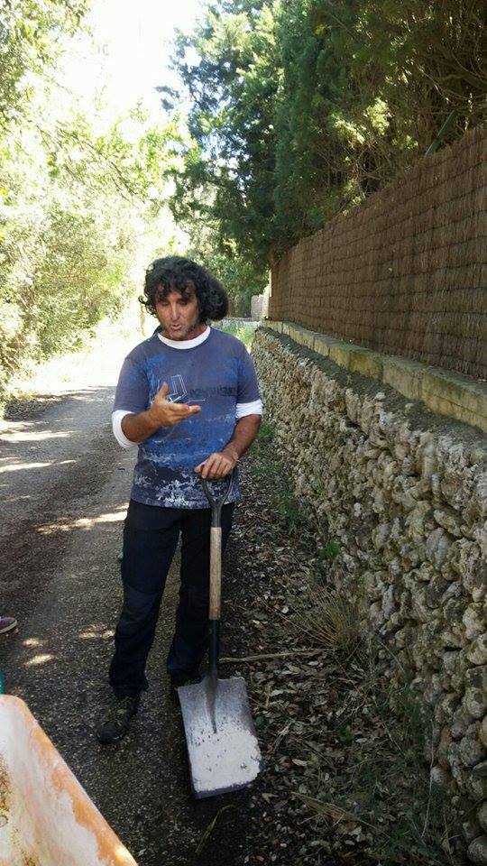 En las prácticas Julio nos enseña como hacer una simple granulometría, y a descubrir el PH de nuestros suelo. Como en los Circulos de la Permacultura de la finca Son Barrina hay toda una selección de sitios demostrativos, nos es fácil encontrar diferentes tipos de suelos para experimentar. Luego partimos en una expedición para lo que nuestro gran maestro Julio Cantos denomina crear un bosque ¨a carretilladas¨. Consiste ni mas ni menos que en recoger todo el material orgánico que se amontona a los lados del camino bajo los arboles, de donde lo vendrá a recoger los servicios de limpieza dentro de un par de días, y por medio de una simple carretilla, llevárnoslo para utilizarlo de acolchado para nuestro incipiente bosque. Acolchado fenomenal, natural y gratuito, y del cual es muy posible que salgan las mismas especies que crecían donde lo cogimos.