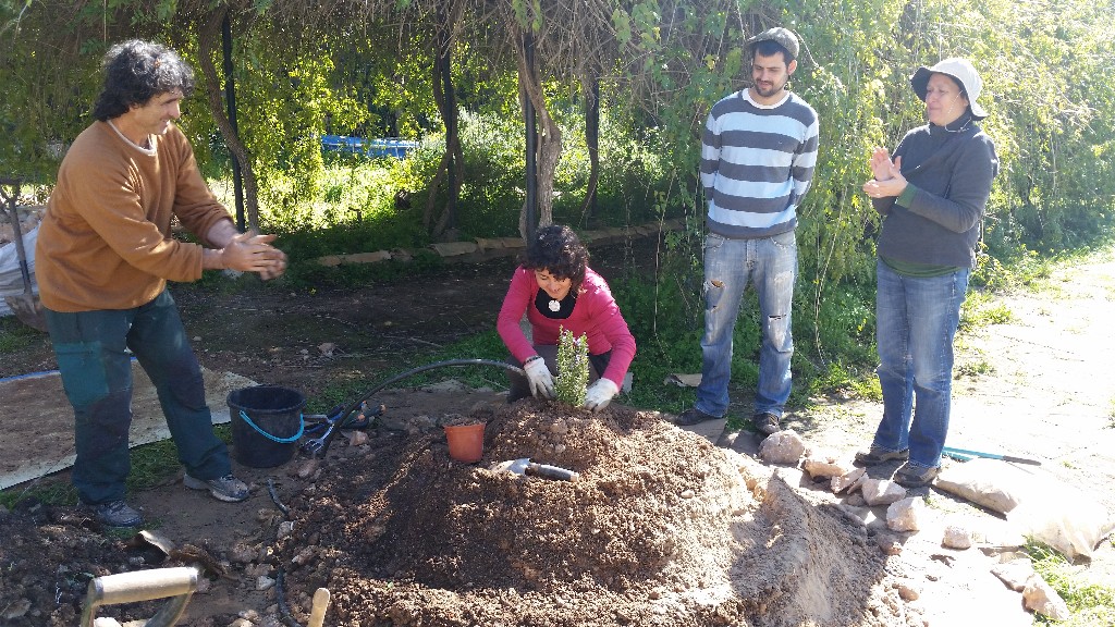 El tiempo, con un maravilloso sol y temperatura nos acompañó perfectamente para construir esta espiral de aromáticas y fenomenal para comenzar los ciclos de cursos de PermaMed en este 2015. Así que, hemos empezado de la mejor manera posible. Gracias a los participantes por su labor, su interés, sus donaciones tanto de dinero como de tiempo y gracias a Julio por compartir con nosotros sus conocimientos. ¡Os iremos contando qué tal evoluciona esta espiral!