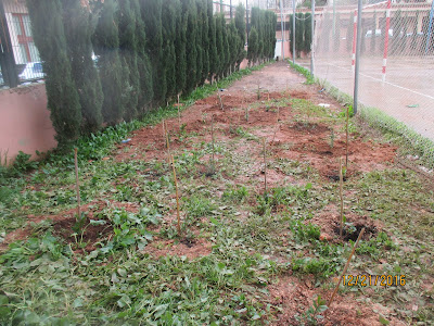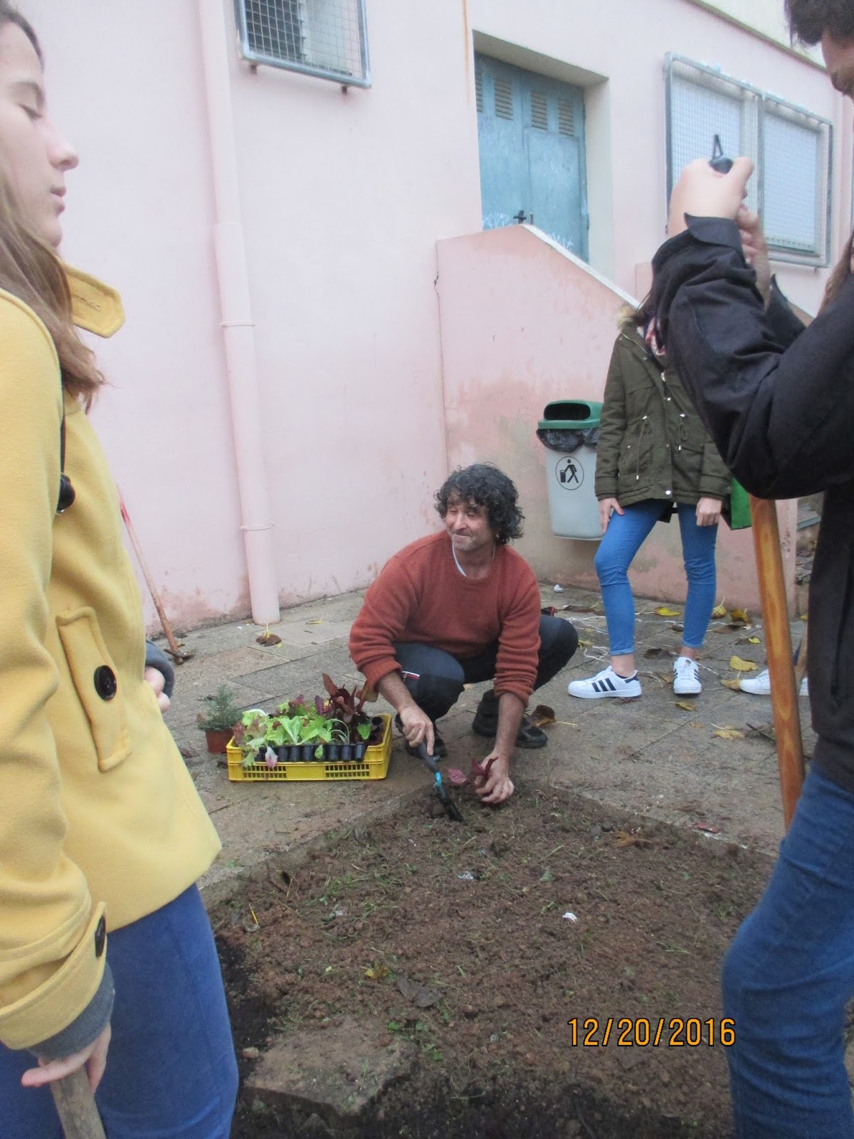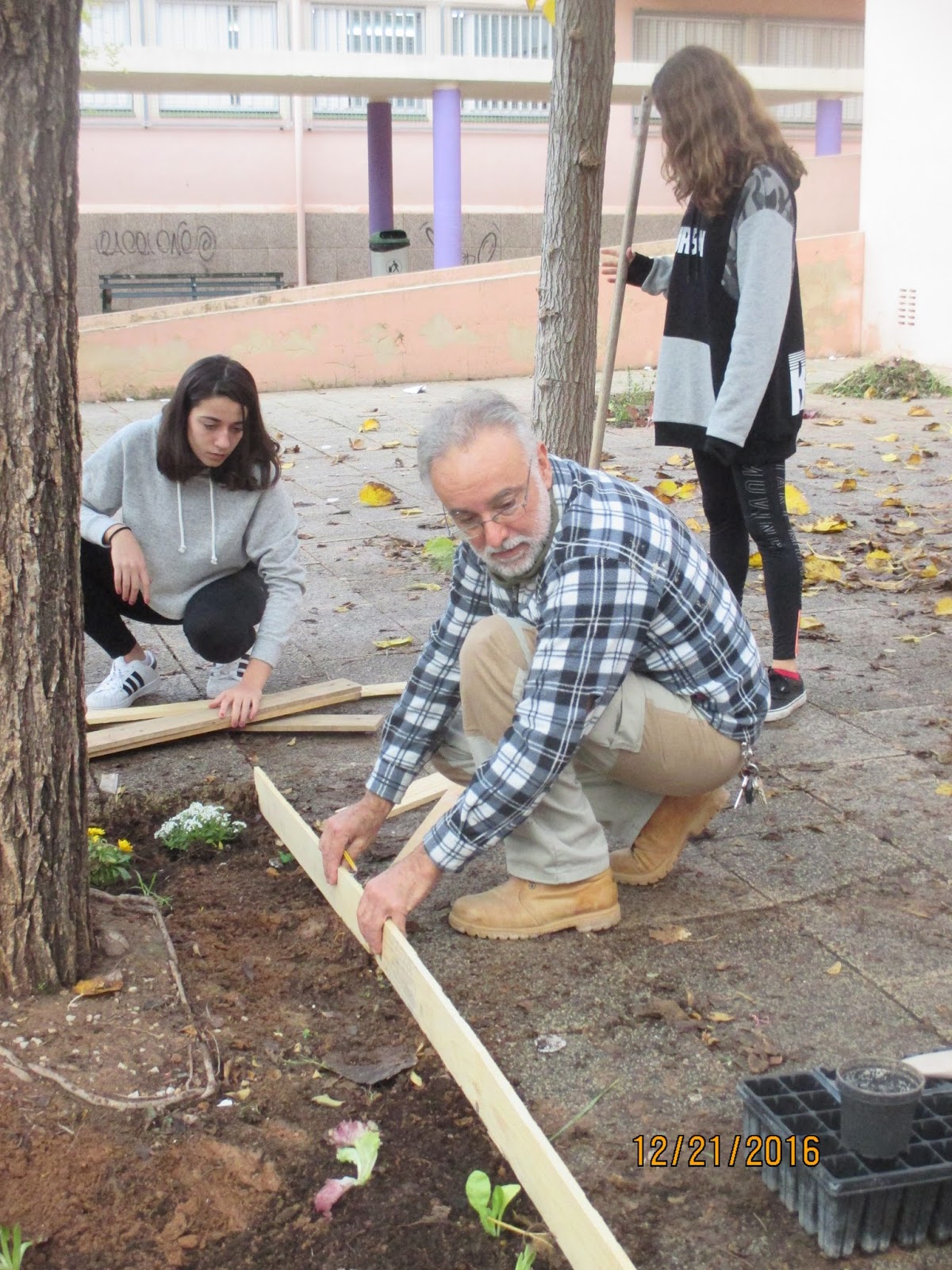 Aprofitant la garangola d’ un arbre que ja és mort que tenim al pati, han fet un petit hortet.