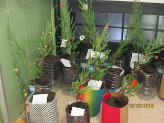 Amb productes de reciclatge, sembram un arbre. El decoram amb motius de Nadal. Cada alumne se